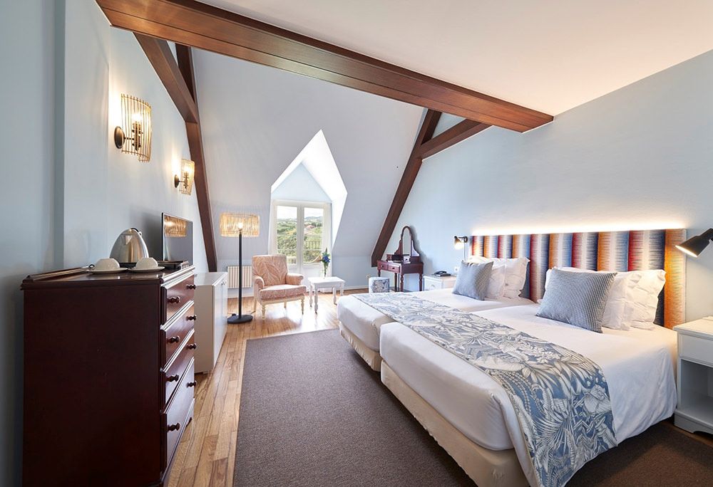 The main house has a warm classic style displayed in 40 double rooms and 5 suites tastefully decorated. A second, more modern wing houses 20 superb rooms, also facing the Atlantic.